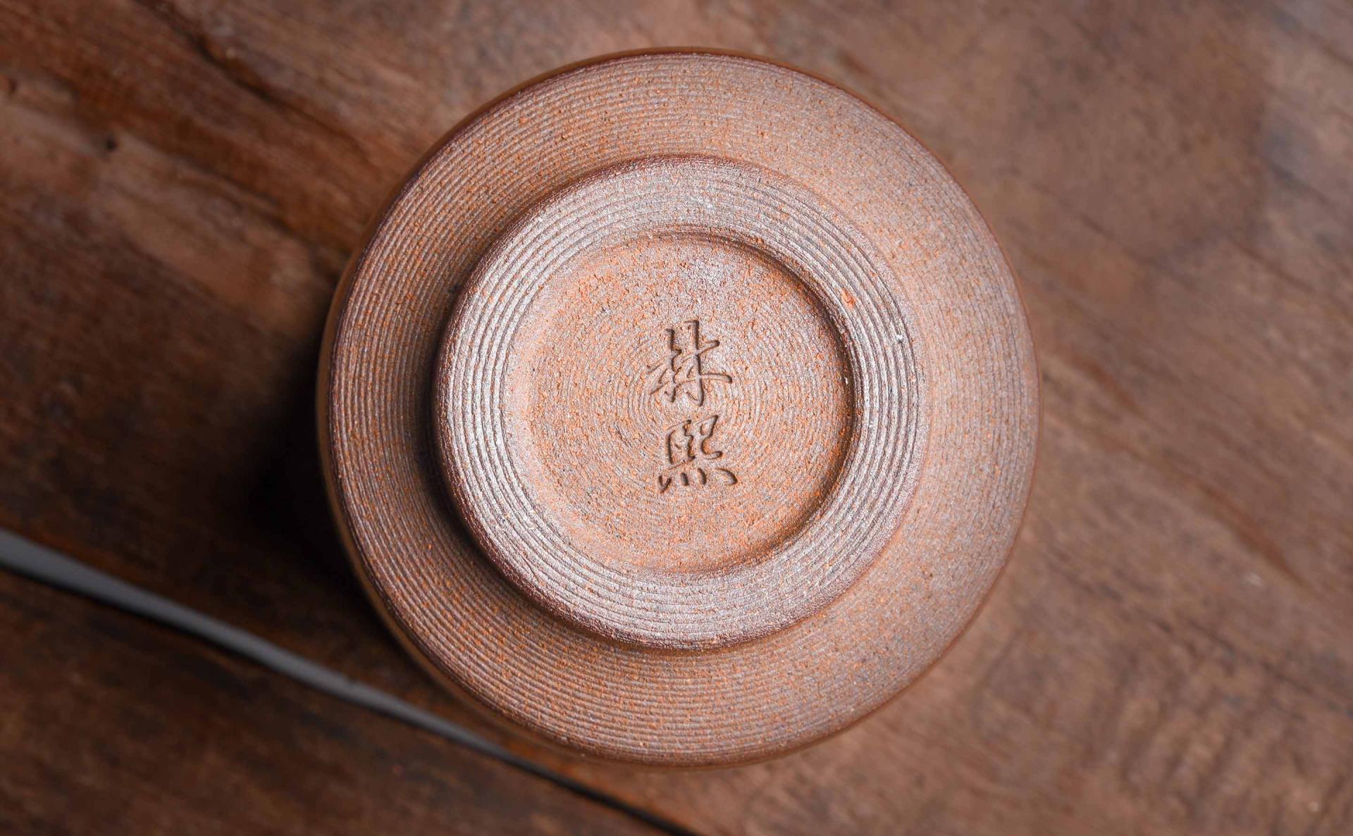Only one out of every ten "cai shao" wood fired Dragon Kiln cups typically survives the firing process and each piece is a unique fortuitous chance occurrence. The heat, geometry and placement in the kiln and the specific wood used in firing yielded this spectacular pattern.