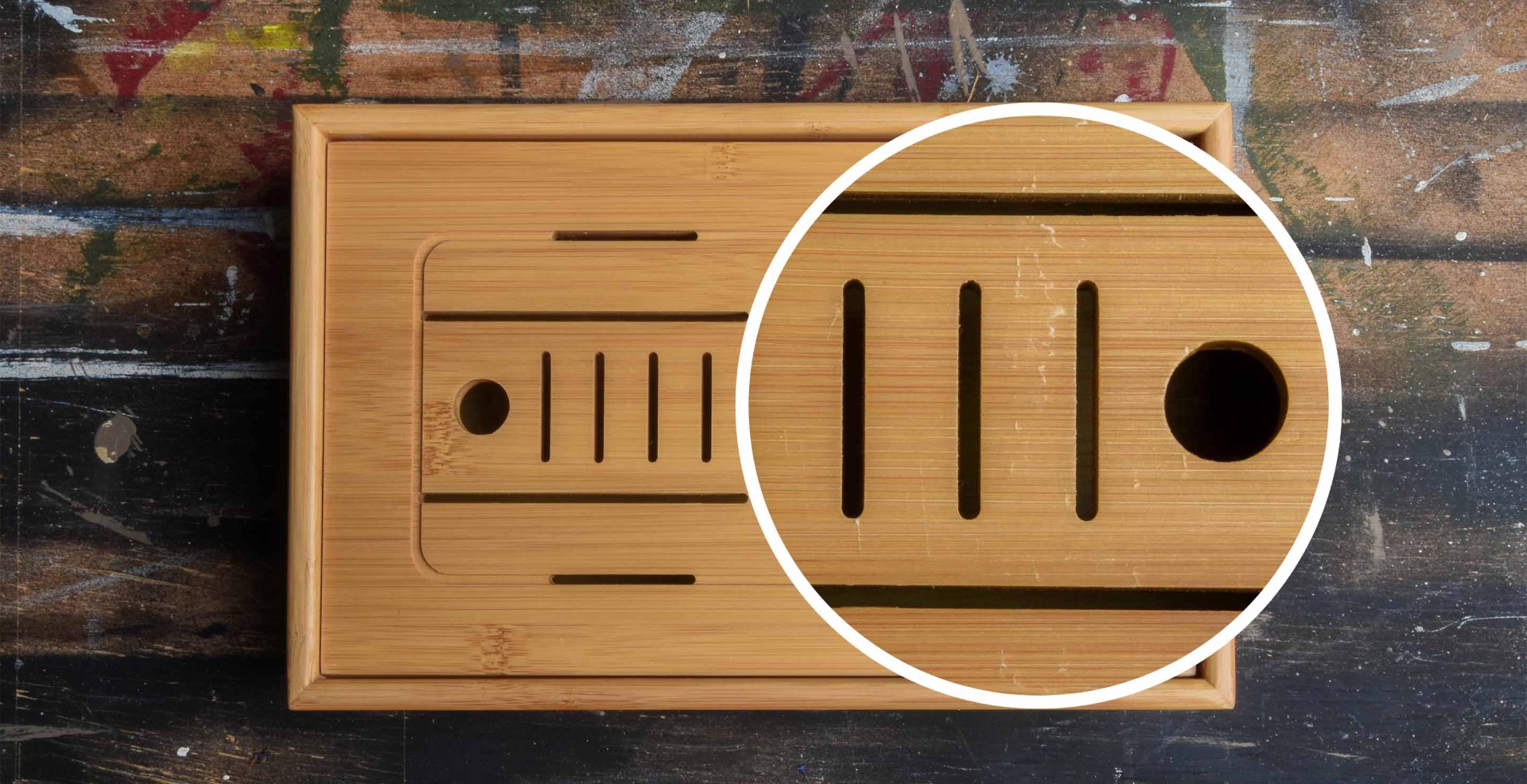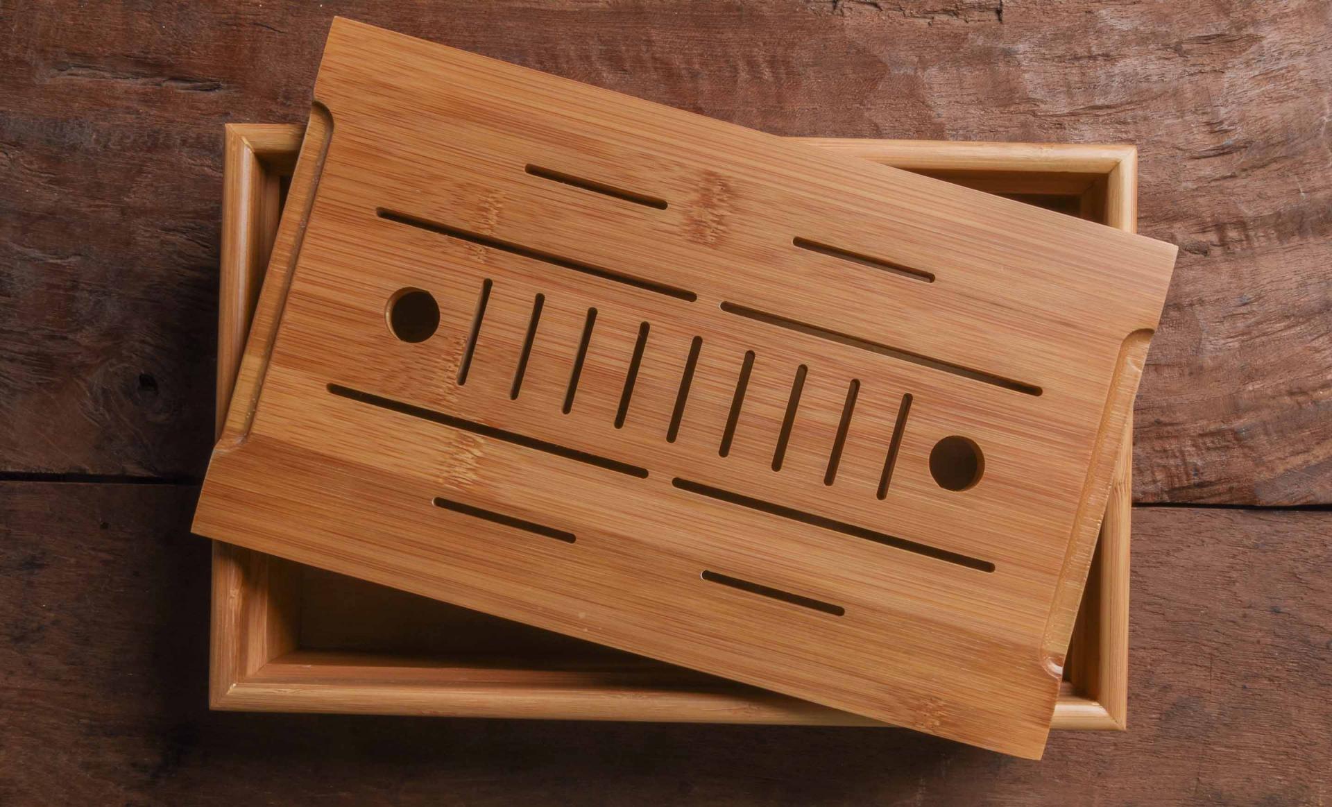 This flexible tea tray is a perfect foundation for your gongfu tea, perfectly sized for a gaiwan or teapot, a pitcher and several cups. The board will catch any tea you pour over it and the lid is removable for draining. A timeless bamboo tea tray elevates your gongfu brewing and frames off your tasting while containing leaves, water etc so you can focus on the tea.