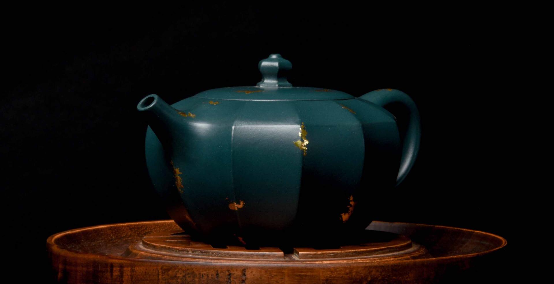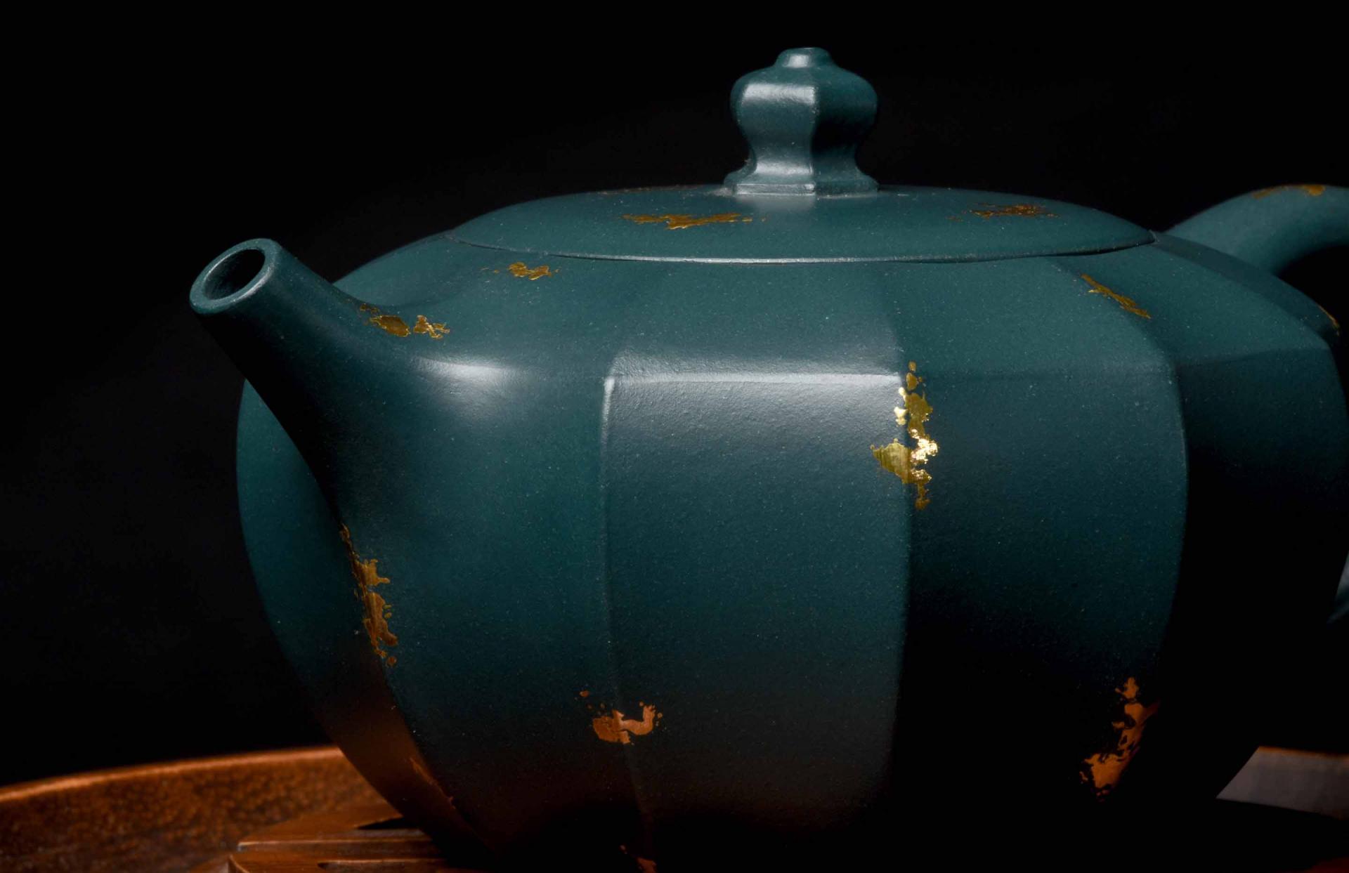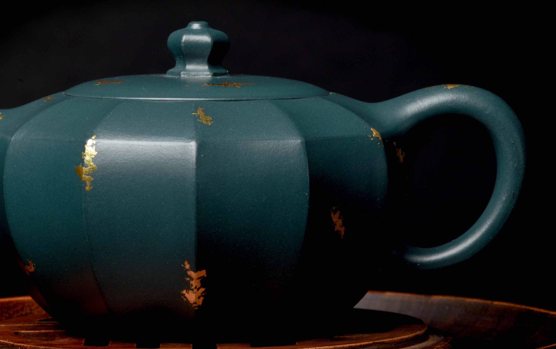 During a period of experimentation, the vivid blue glazing material for porcelain was mixed with Benshan Qing Duan Yixing clay, and produced an incredible deep green clay that they called Republic Green.
