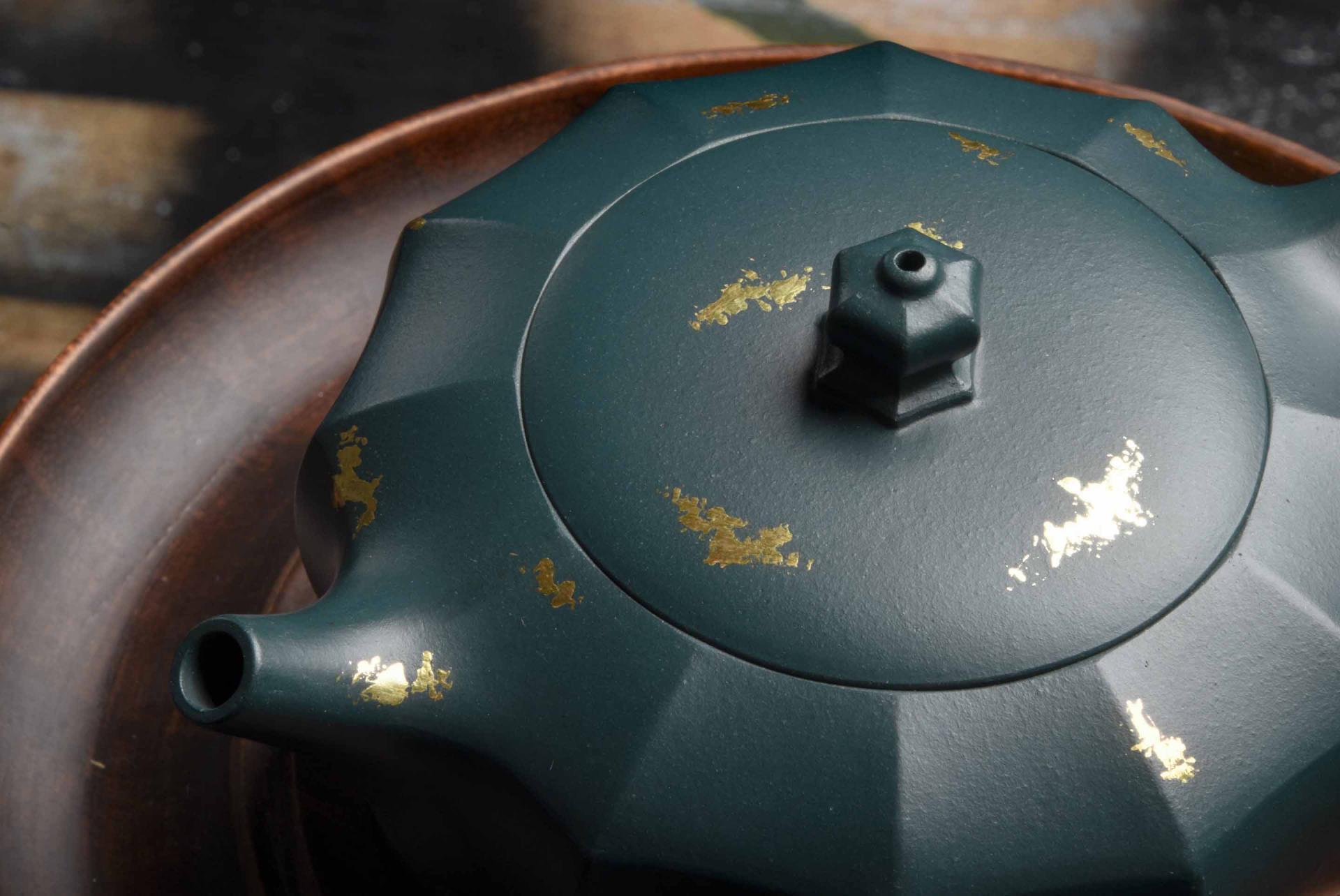 Original deposit Ben Shan clay is already rare enough as it is, but to be used as a “revival” blend with what is essentially the base ingredient of Jingdezhen Porcelain’s stunning blue glazing makes this even more special. It is fitting that Tang Xianwu chose her most iconic, award-winning and beloved faceted style to showcase Sumatra Green.