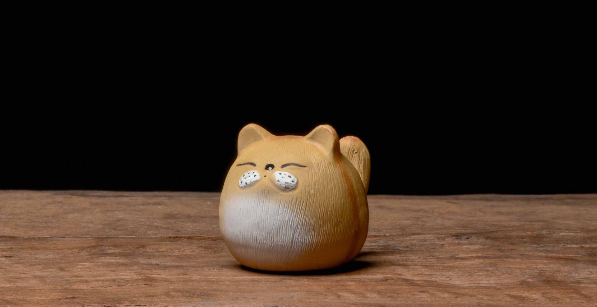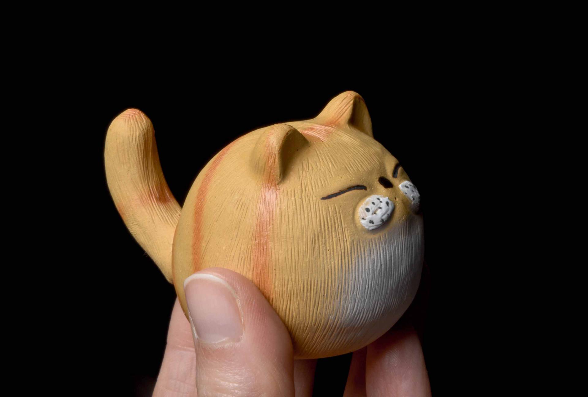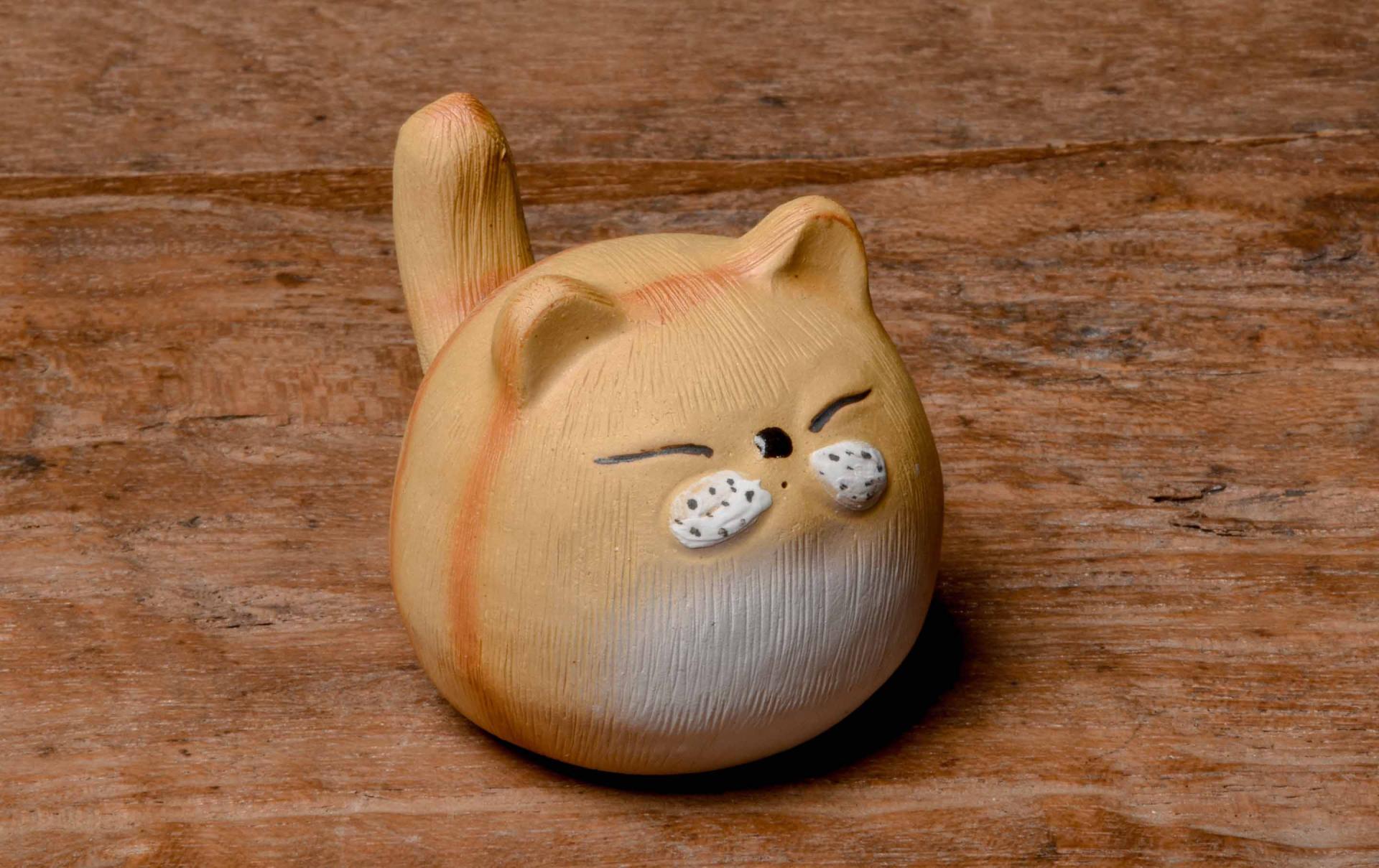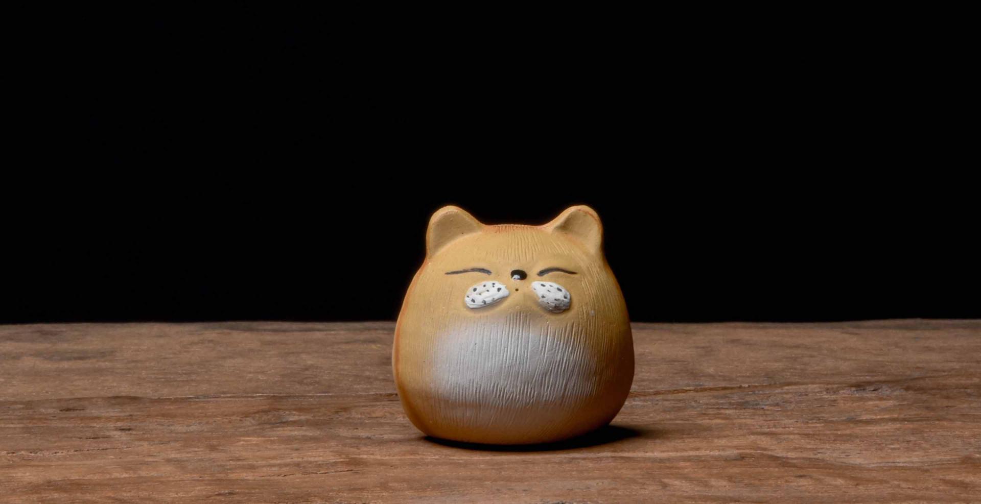 This portrait of a perfectly sleepy cat by artist Zhao Yonghui was hand-sculpted with fine yixing clay that will get deeper and more lustrous over time as you pour tea over your tea pet.