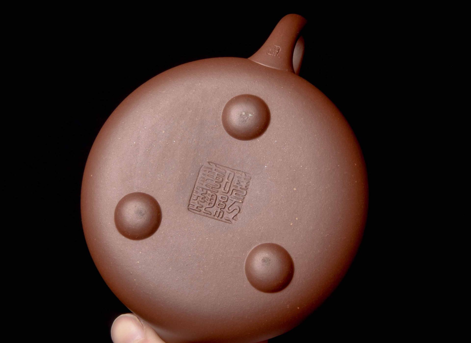Award-winning artist Lai Xiaohong brings together fine clay and a modern, organic sensibility to traditional forms. This beautifully carved Shi Piao teapot is hand built with deep and mottled Di Cao Qing clay and features a contemplative landscape across one side. The carving will stand out more over time, gaining more depth and luster over years of brewing.