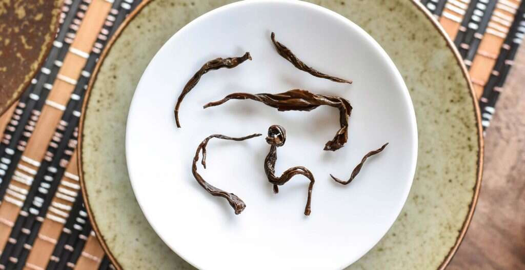 Teas with more leaf like Zheng Shan Xiao Zhong and Wuyi Gongfu Black are picked from delicate young spring leaves that have had more time to interact with the sun and develop polyphenols, the plants’ natural defense against insects. These polyphenols are responsible for much of the flavor in tea, making leaf-based teas much more flavorful and often more aromatic. Wuyi black teas made from leaves tend to have rich grape undertones and other foresty complexity.