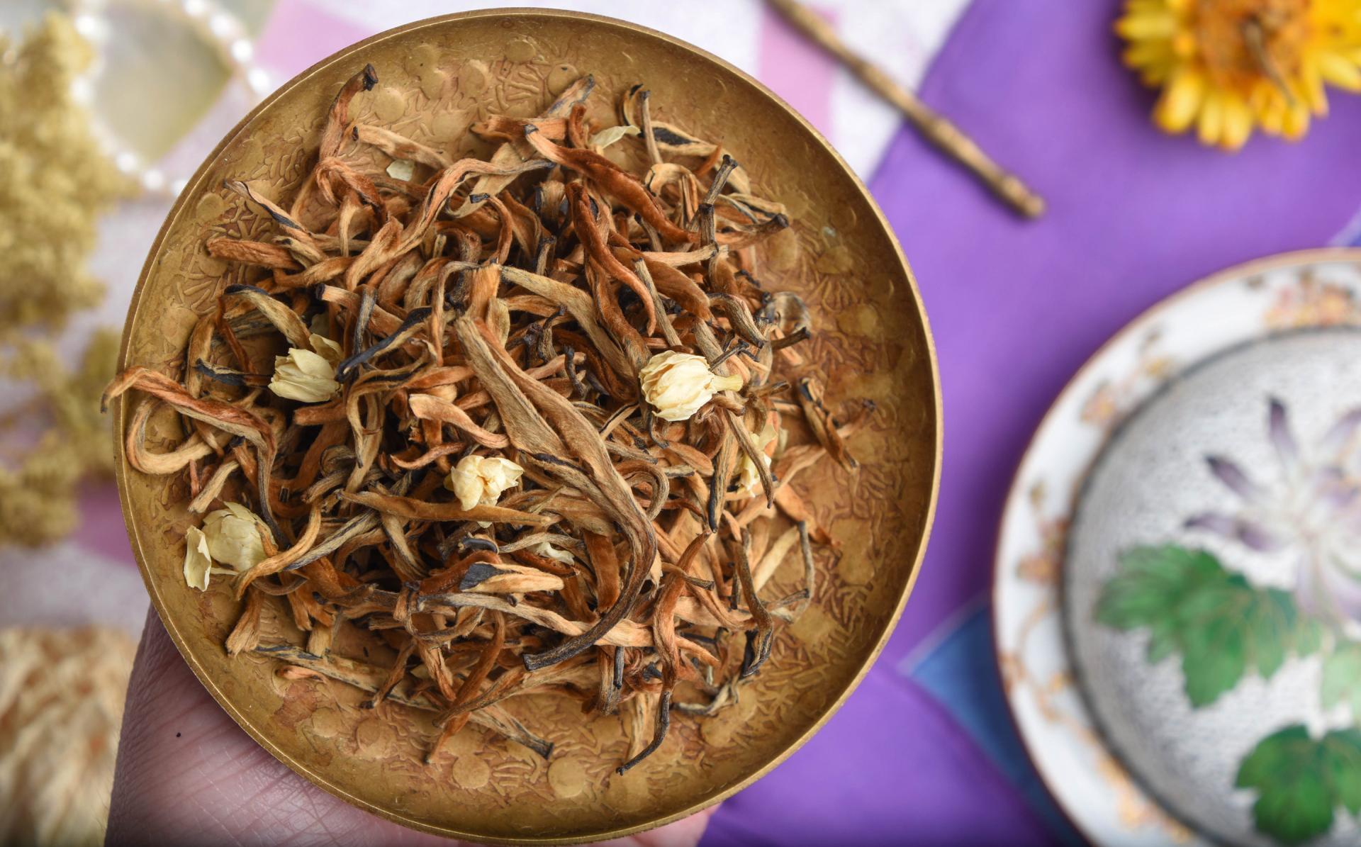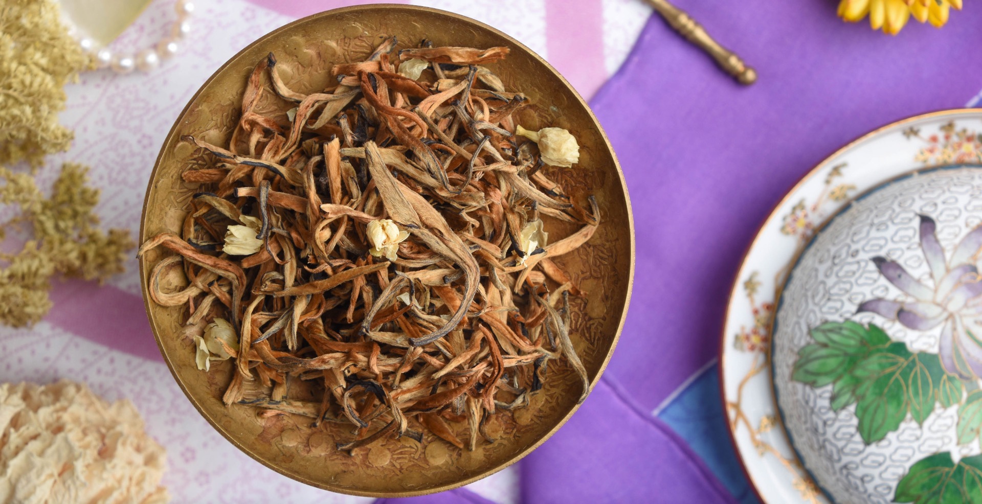 This lovely offering from Wang Yanxin combines the very best of two of our favorite teas - Yunnan White Jasmine and Golden Fleece. Huge buds are picked from Yunnan Da Bai, a varietal normally used for white tea. These buds are allowed to fully oxidize into black tea, but during oxidation and drying, wild jasmine blossom are scattered among the buds, allowing the natural aroma of the jasmine to absorb over several days into the tea itself. The jasmine flowers have to be changed and renewed six times over six days to get a full aromatic infusion that lasts over many steepings. The old craft of true jasmine scenting is a slow laborious process, but the results are worth it. This tea is as rich and sweet as Golden Fleece and as luscious as Jasmine.