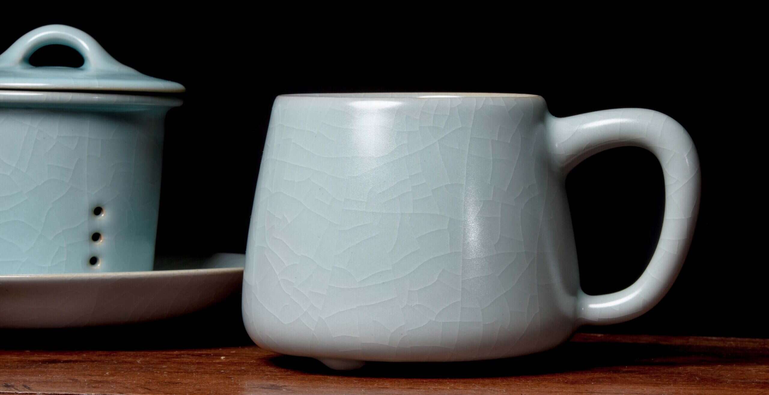 The smooth creamy ru glazing work crackles over time, forming a beautiful crazing effect. This brew mug combines the aesthetic presence and ritual of serious gongfu teaware with the convenience of big mug brewing, making it perfect when you want to enjoy a special tea in a big cozy steeping, or sip your favorites while working. includes custom gift box