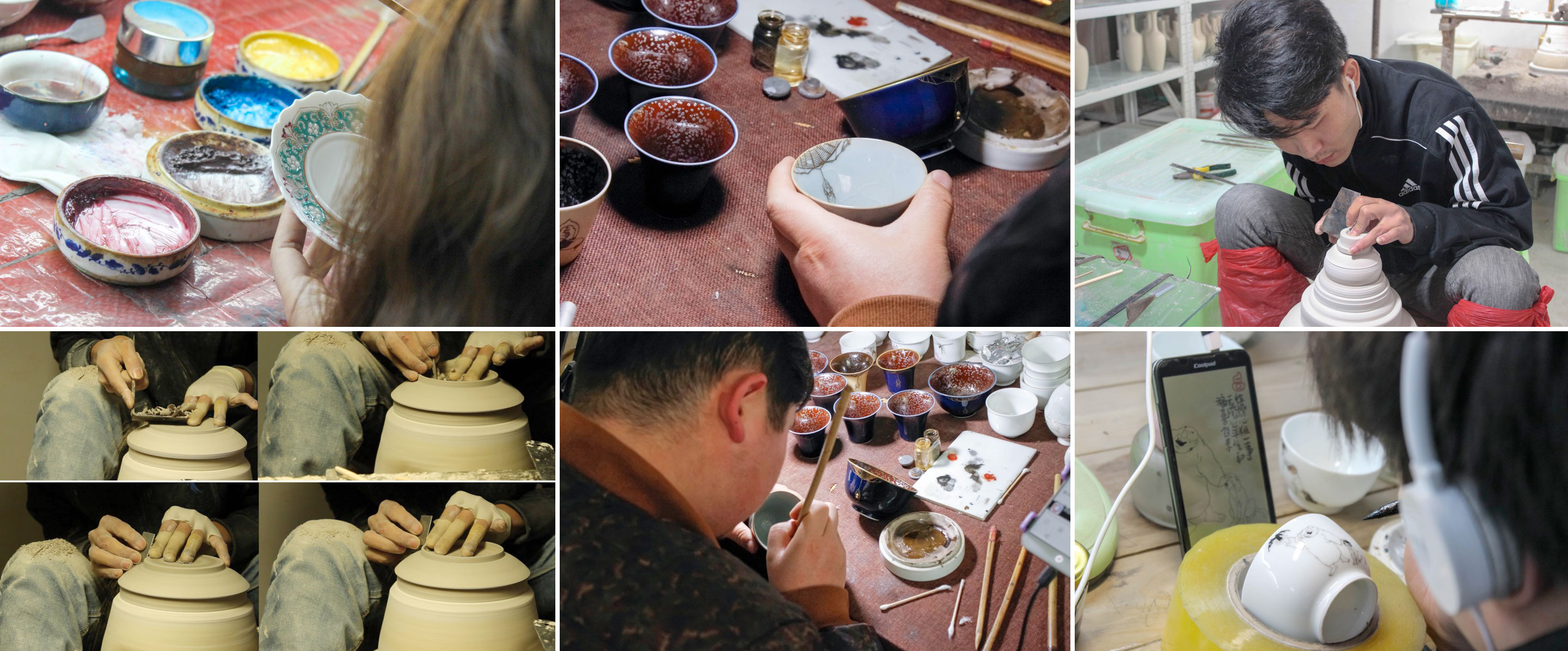 To complete the the form and meticulous painting of each piece in a set like this, it requires the work of many different specialized craftspeople over about two weeks.