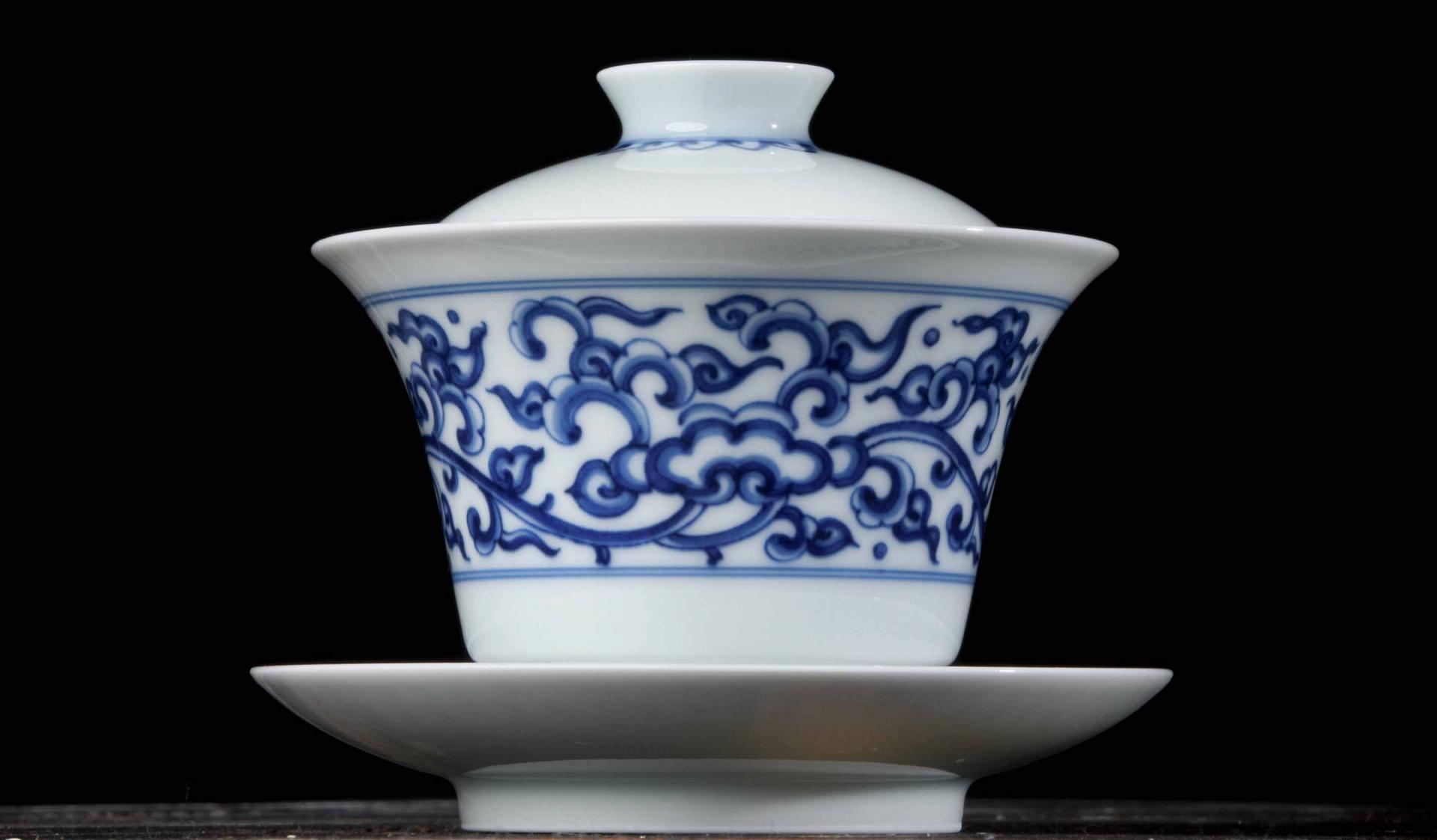 This gaiwan is inspired by traditional architectural wood carving that might adorn a scholar's studio or garden pavilion.