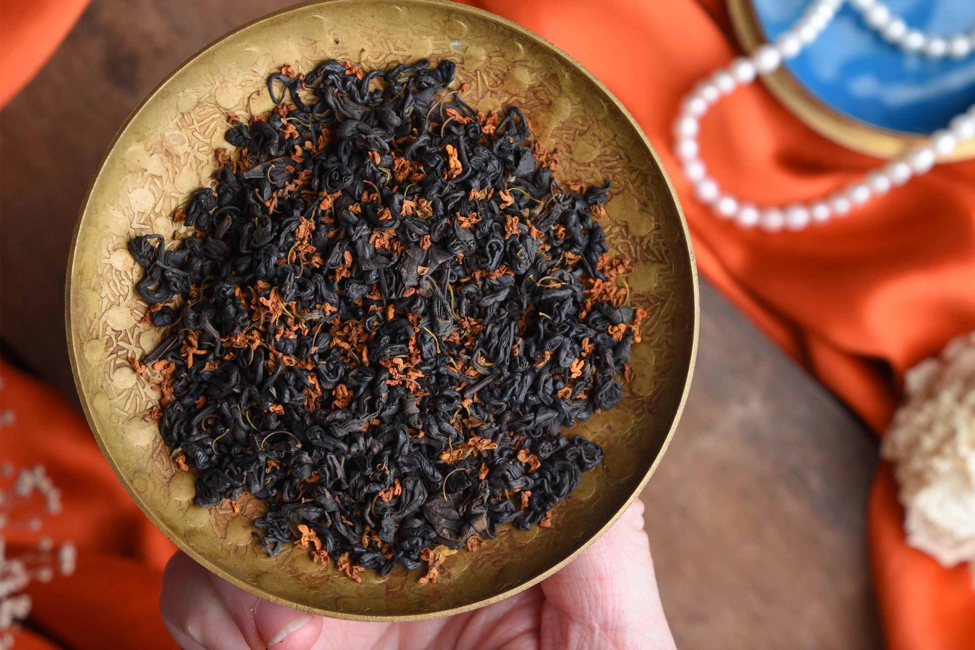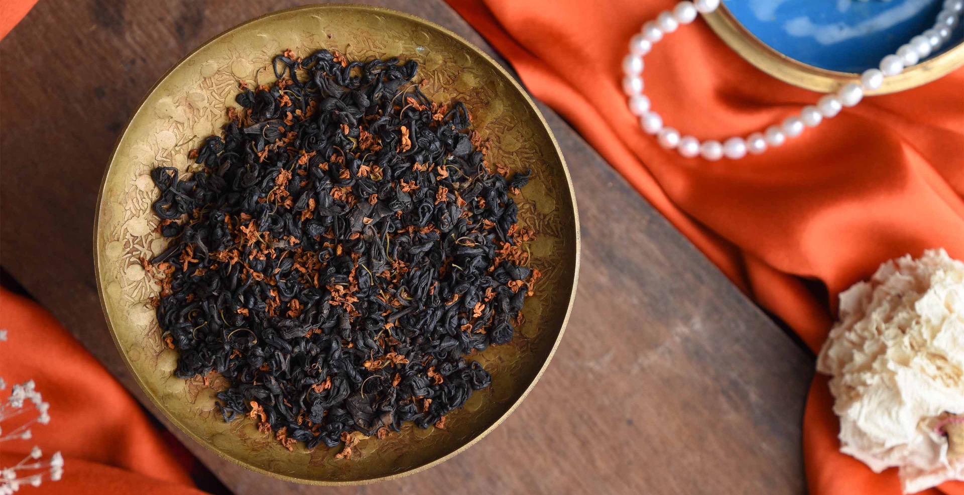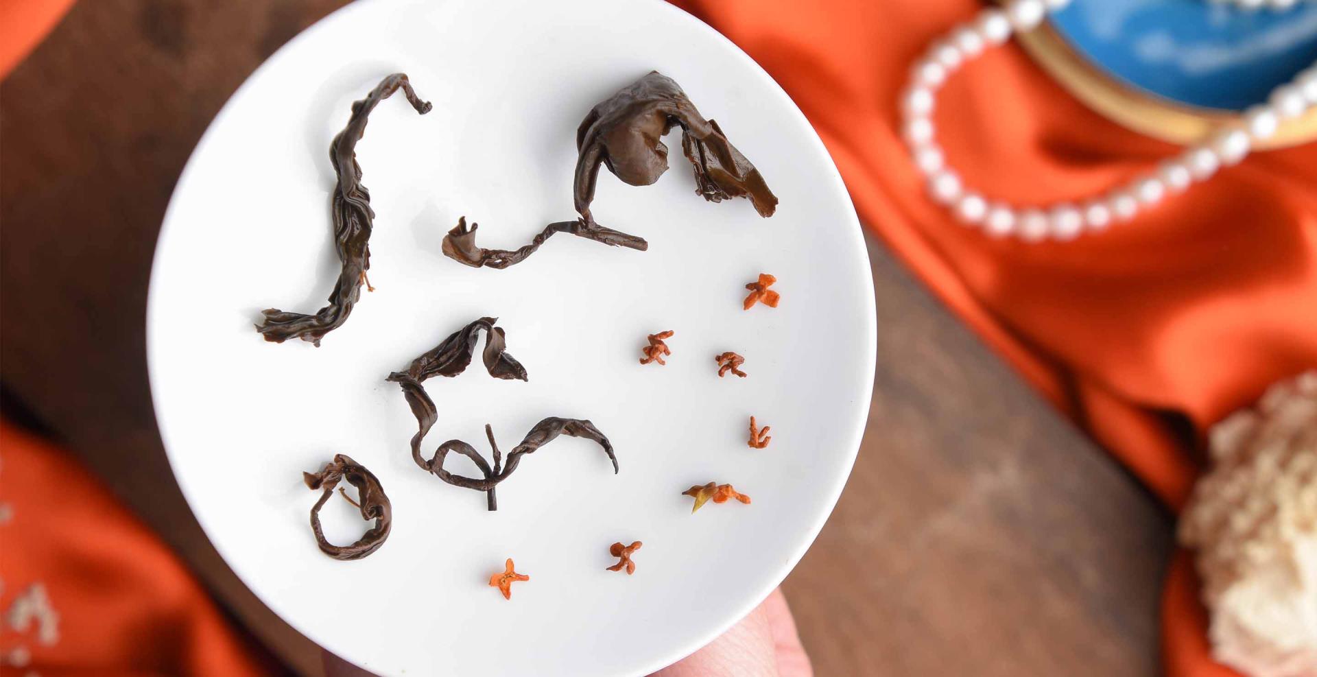 The He Family has a deep knowledge of every flower and herb growing in Laoshan. Every year, they wild-forage herbs for medicine and cooking, but this year, they revived their experimental oolong scenting prokect. Wild osmanthus blossoms are blended with their hand-processed roasted oolong. Because the osmanthus blossoms are so small and so inaccessible for picking, this is an incredibly labor intensive tea to forage and finish. They picked and finished this tea for Tea Club members this November, with just a small amount left, for us to share now with everyone. The osmanthus blossoms are mixed with Laoshan roasted oolong - a subtle and delicate tribute to the craft of the region and the innovation of the He Family.