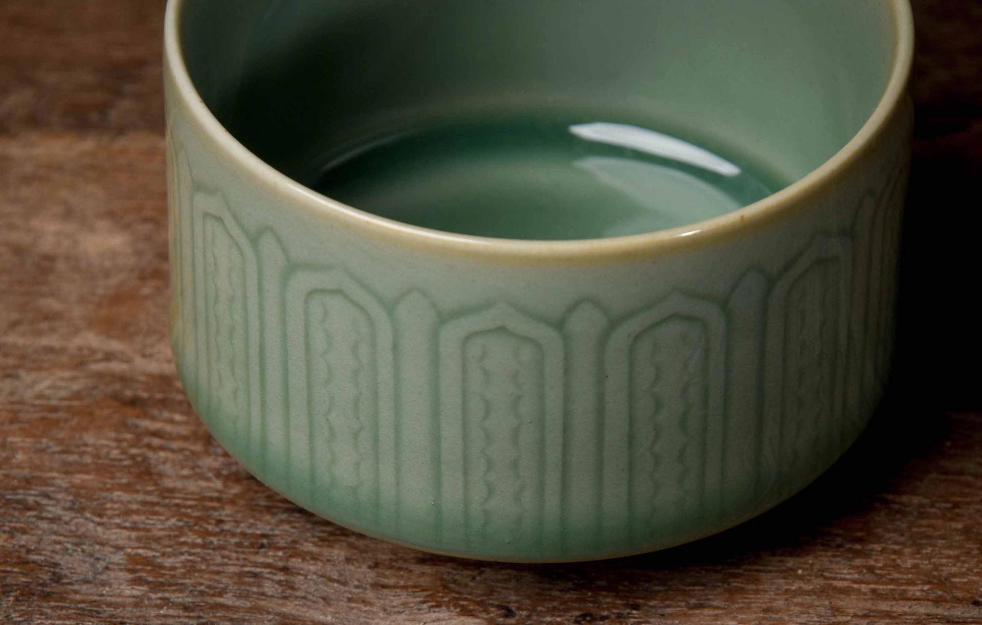 This beautifully detailed art-deco inspired relief was meticulously crafted to show off the beauty of the celadon glazing and bring a sense of elegance to your tea. Hand-finished and fired in a traditional Longquan kiln, this celadon is highly vitrified like glass, making it a non-reactive material that helps bring out incredible aromatic depth in your tea.