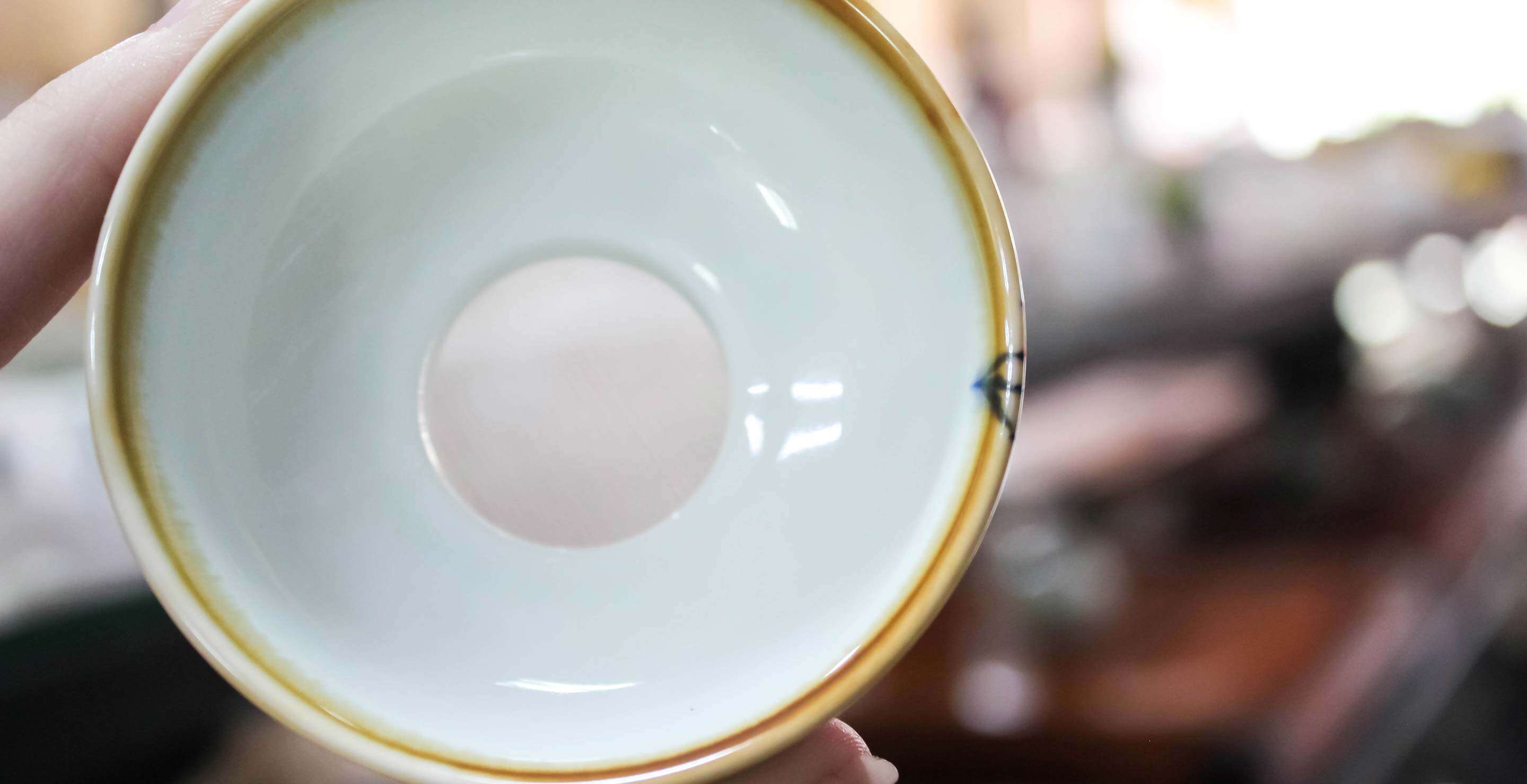Hand painted porcelain strainer and matching stand with delicate blue lotus painting and soft, natural accents. The strainer is fitted with a fine synthetic cloth for durability and easy cleaning; the fine mesh helps catch and filter while brewing gong fu tea.