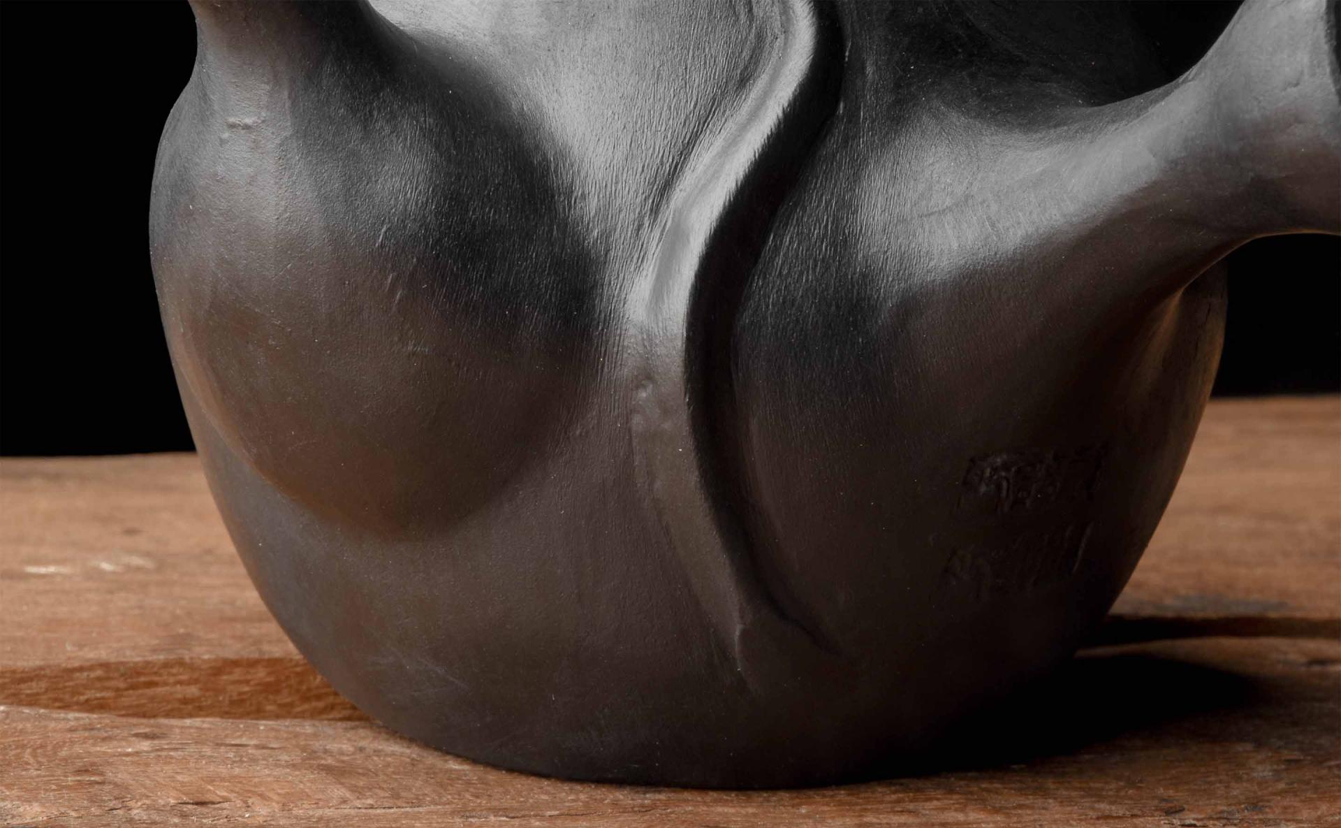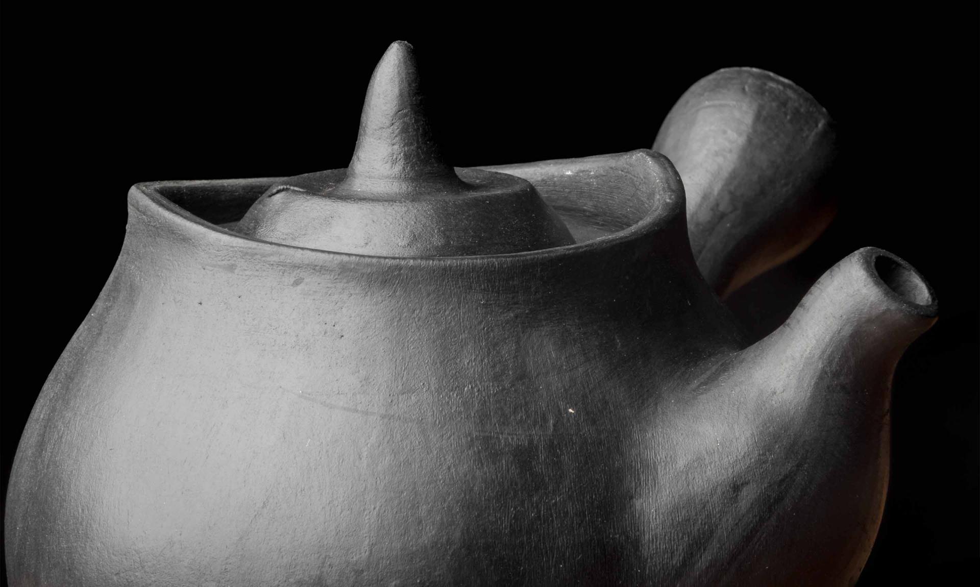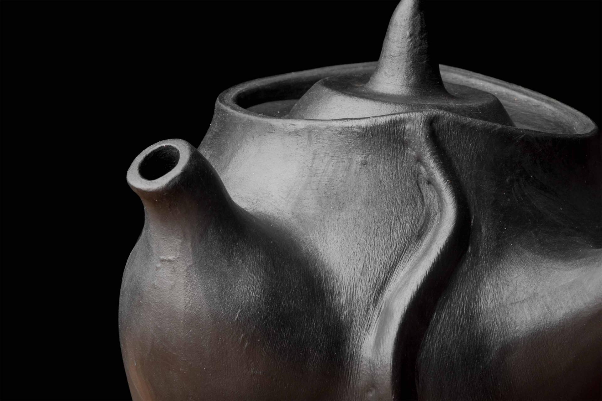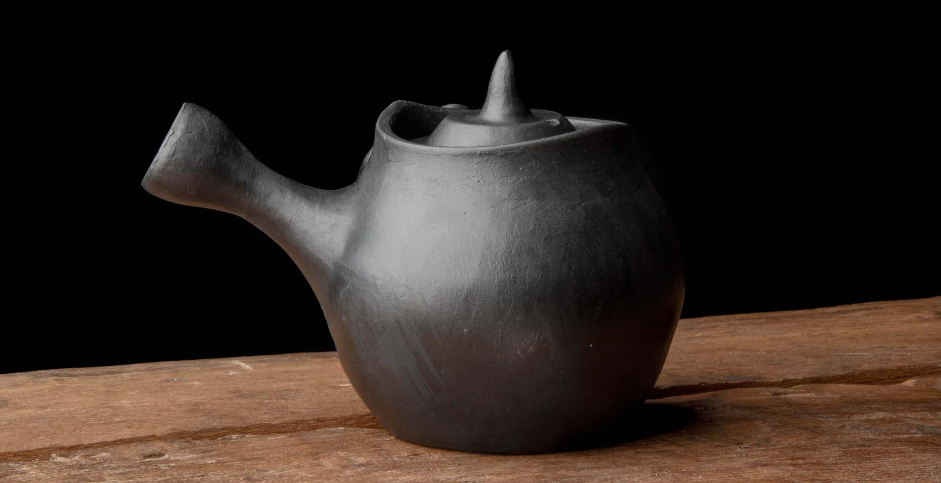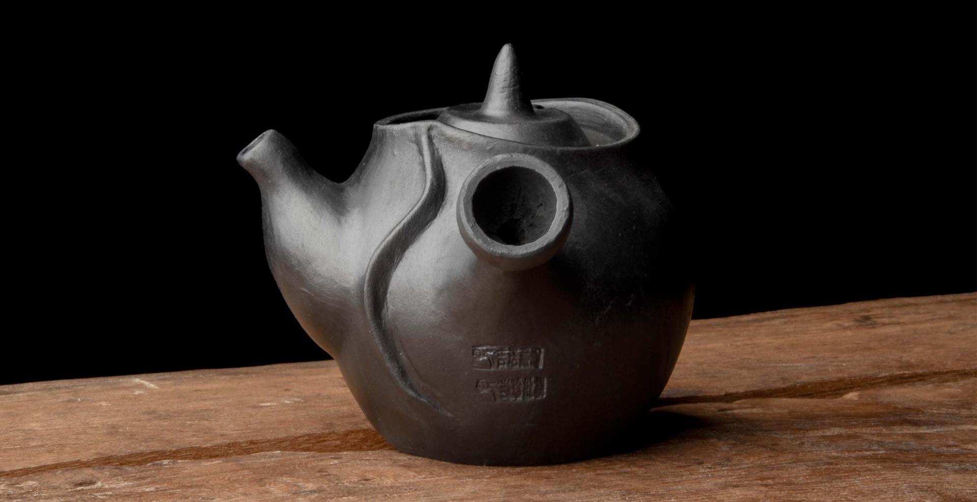 This piece is formally situated between a modern gongfu style and the ancient Tibetan yak butter brewing pot form, incorporating Dangzhen Pichu’s research in Yixing with his mastery of the Nixi style.