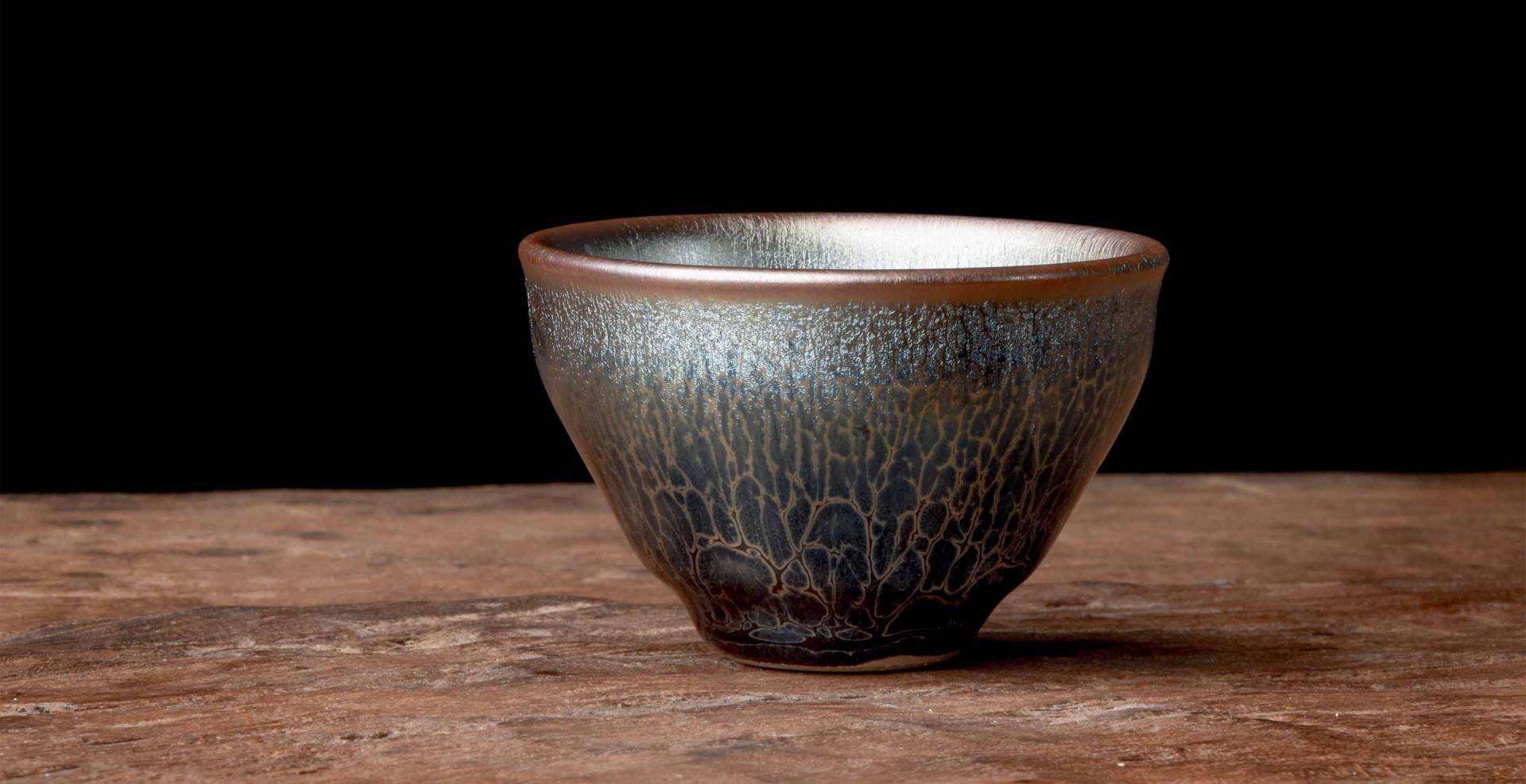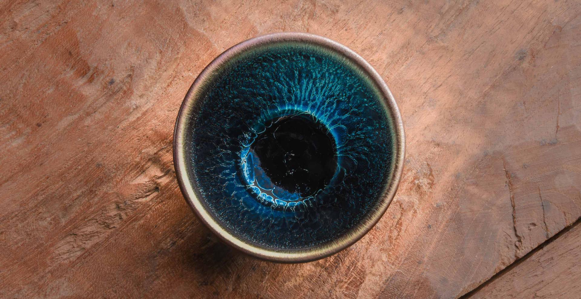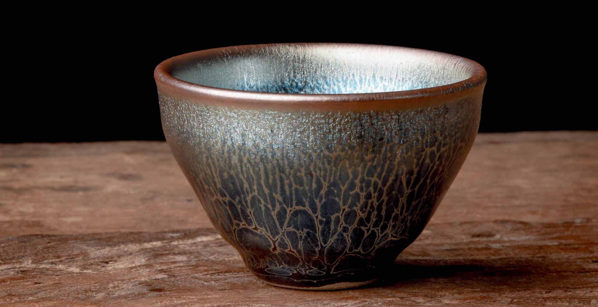 This beautiful shimmering blue gongfu teacup is the result of years of research and experimentation by award-winning master potter Lin Xi. The rippling cascading shapes form under the high heat of Lin Xi’s kiln firing a glaze that Lin Xi personally sourced and blended from an original Shui Ji mineral deposit used in the Song Dynasty. This unique cup was fully hand-thrown and fired in tiny batches dependent on the whims of weather and kiln heat patterns to achieve the desired effect.